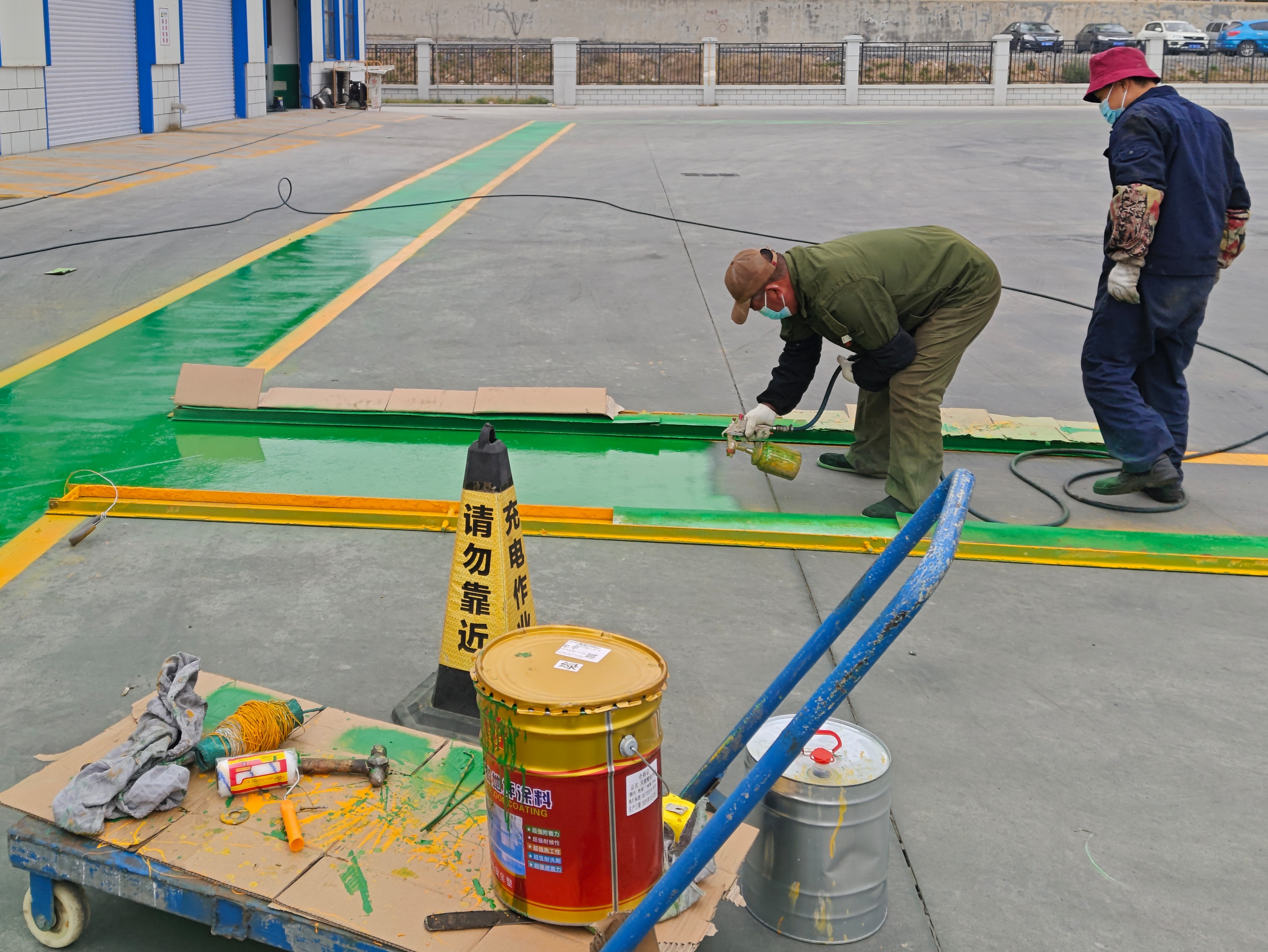 工作人員密切合作,充分溝通,關(guān)注每一個(gè)細(xì)節(jié),從消防通道的標(biāo)識(shí)到設(shè)備的擺放,都進(jìn)行了精心的安排和調(diào)整。同時(shí)還對場站停車區(qū)進(jìn)行噴涂工作。在噴涂工作中,嚴(yán)格按照相關(guān)標(biāo)準(zhǔn)和要求,確保噴涂的質(zhì)量和效果達(dá)到最佳水平。