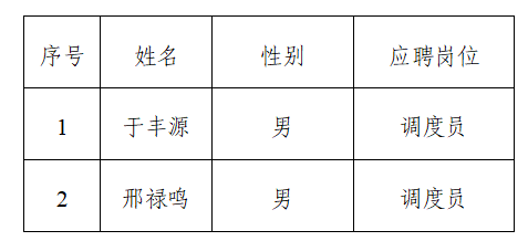 根據(jù)《煙臺市公交集團(tuán)蓬萊城市公交有限公司招聘簡章》的招聘要求,經(jīng)過公開報名、資格審查、面試、筆試環(huán)節(jié),綜合面試筆試結(jié)果以及公司業(yè)務(wù)實(shí)際需要等情況,擬聘用調(diào)度員2名,現(xiàn)將擬聘用人員名單公示如下,公示時間2025年9月15日—2025年9月19日。